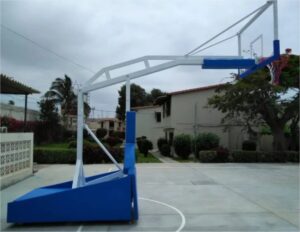- Tableros de basquetbol movibles: incorporan ruedas y contrapesos, lo que permite transportarlos fácilmente dentro de un recinto.