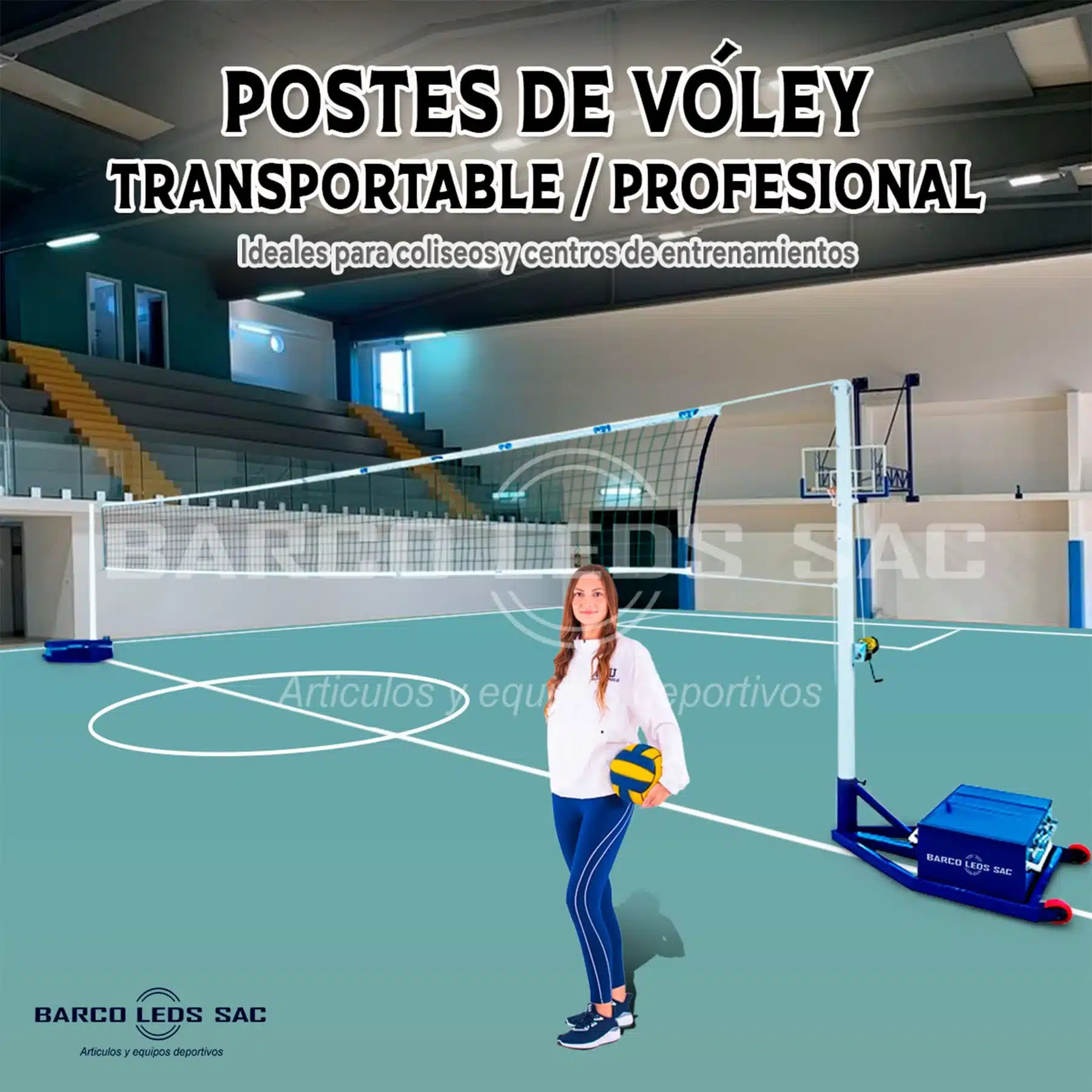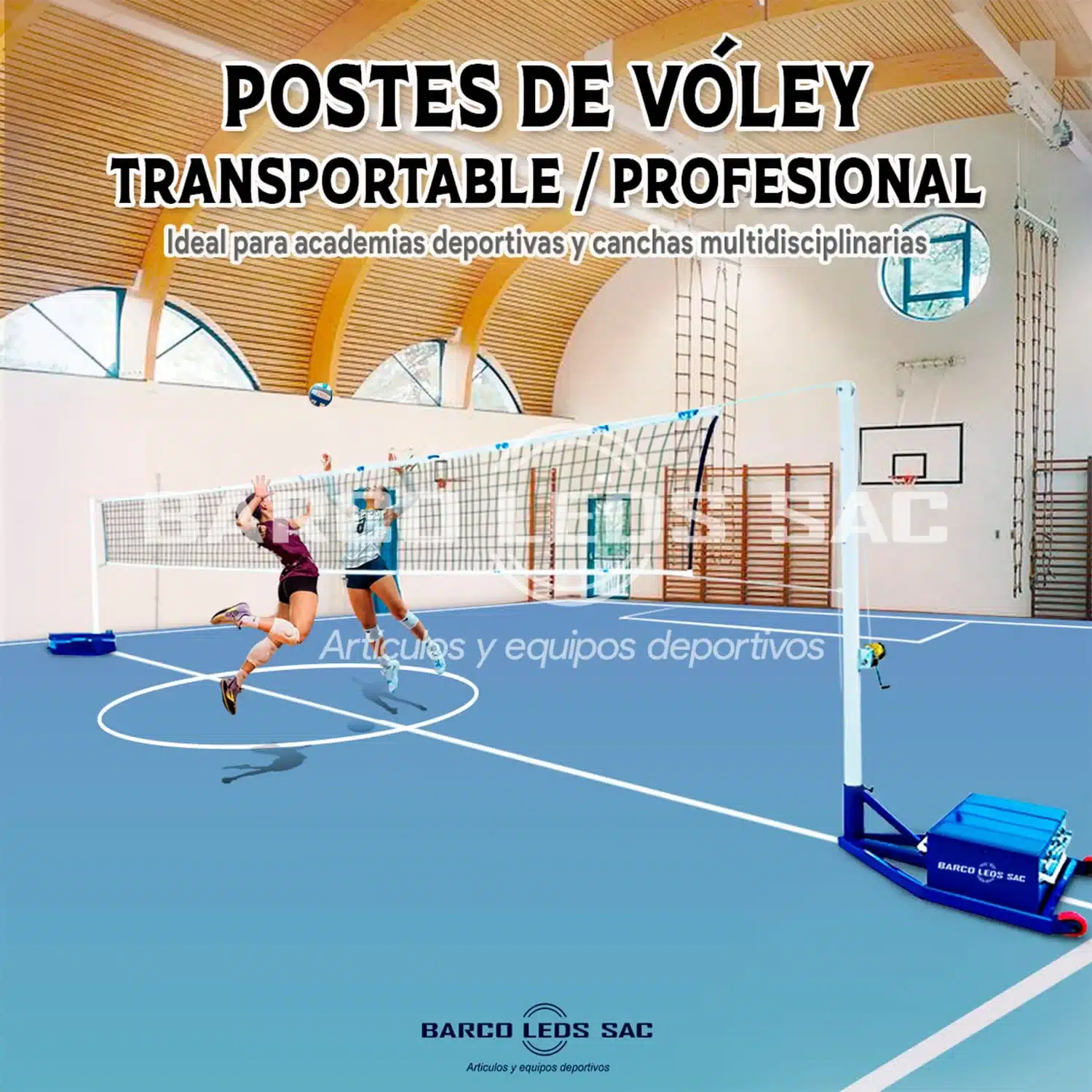 Los postes de vóley transportables de BARCO LEDS SAC están diseñados para garantizar estabilidad, resistencia y un rendimiento profesional en entrenamientos y competencias. Fabricados con fierro tubular galvanizado de 3” de diámetro y 3 mm de espesor, ofrecen una estructura robusta capaz de soportar uso intensivo en academias, colegios, clubes y polideportivos.